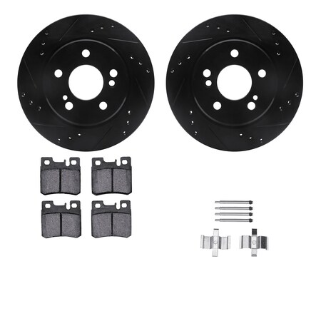 8612-63042, Rotors-Drilled, Slotted-Black w/ 5000 Euro Ceramic Brake Pads incl. Hardware, Zinc Coat