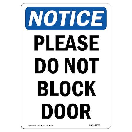 OSHA Notice Sign, Please Do Not Block Door, 10in X 7in Aluminum