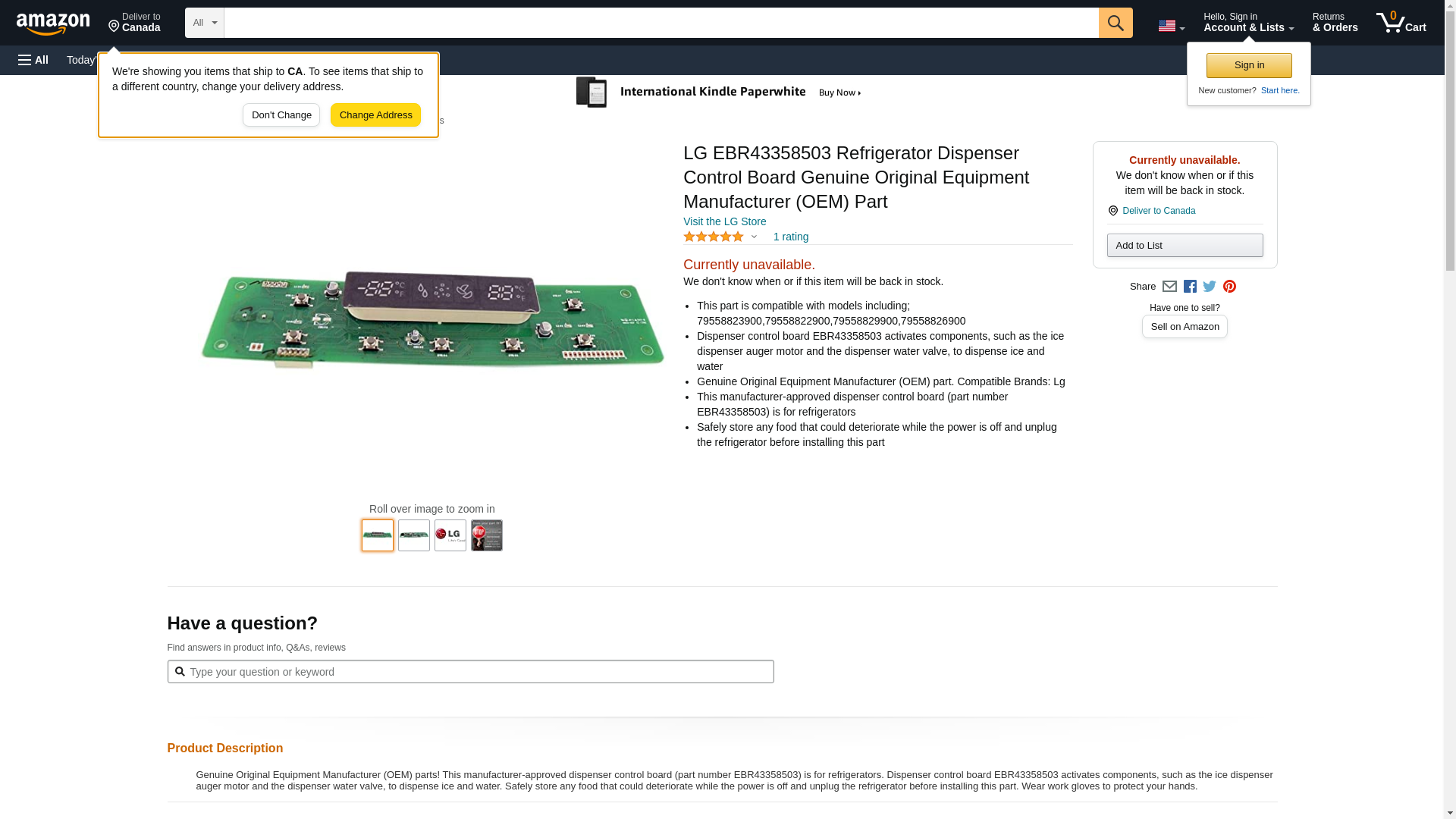 - This manufacturer-approved dispenser control board (part number EBR43358503) is for refrigerators