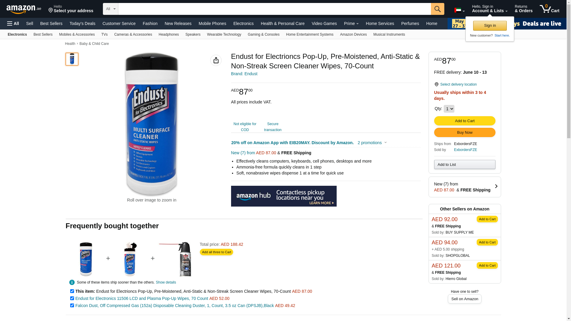 | Feature | Fast drying wipes that remove light dirt and fingerprints from electronic surfaces |
