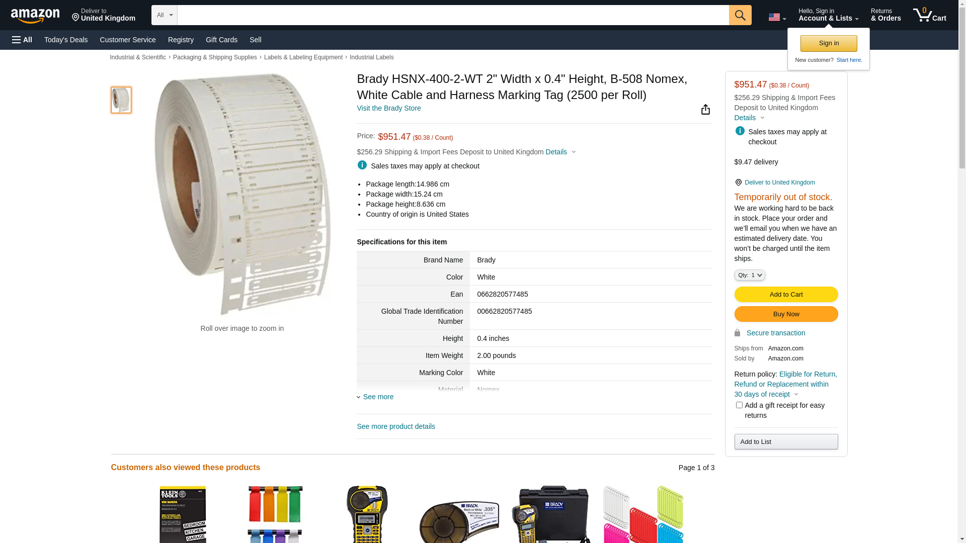 Order HSNX-400-2-WT by Brady Cable & Harness Marking Tag, White - US Mega Store