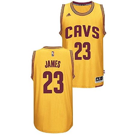 New from the NBA Youth Collection for the younger Cavaliers fan this 100% nylon Lebron James Youth Cleveland Cavaliers NBA Embroidered Swingman Basketball Jersey by Adidas which comes in Gold features an embroidered Adidas Logo on the upper left chest, embroidery on the #23 on the front and back center, Cavs embroidered on the chest, his last name on the upper back, a stitched lower left hem jock tag, and a color contrasting lower left hem stitched All for one, One for all slogan .Loose Fit Body in Team Color Gold Made by Adidas for Fans of the NBA Youth Sized Jersey, Machine Washable on Cold Screening on the Cavaliers and James Graphics Officially Licensed Cleveland Cavaliers Youth Jersey