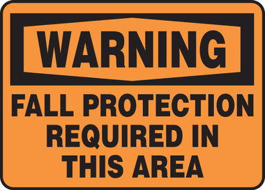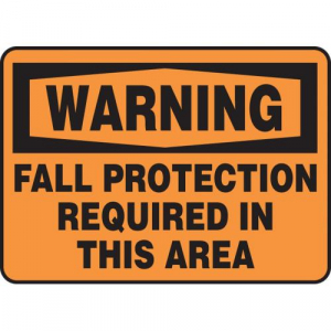 WARNING FALL PROTECTION REQUIRED IN THIS AREA 10" x 14" Plastic Sign