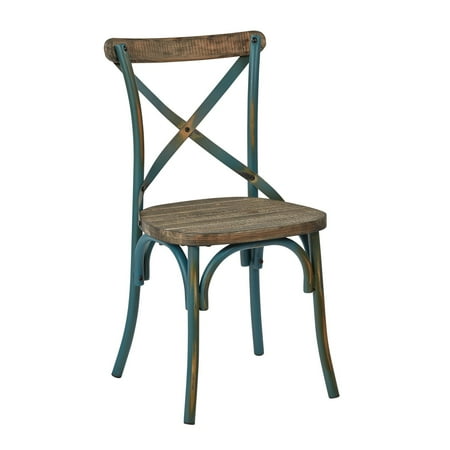 OSP Home Furnishings Somerset X-Back Antique Style Metal Dining Chair with Hardwood Seat, Rustic Walnut Finish and Black