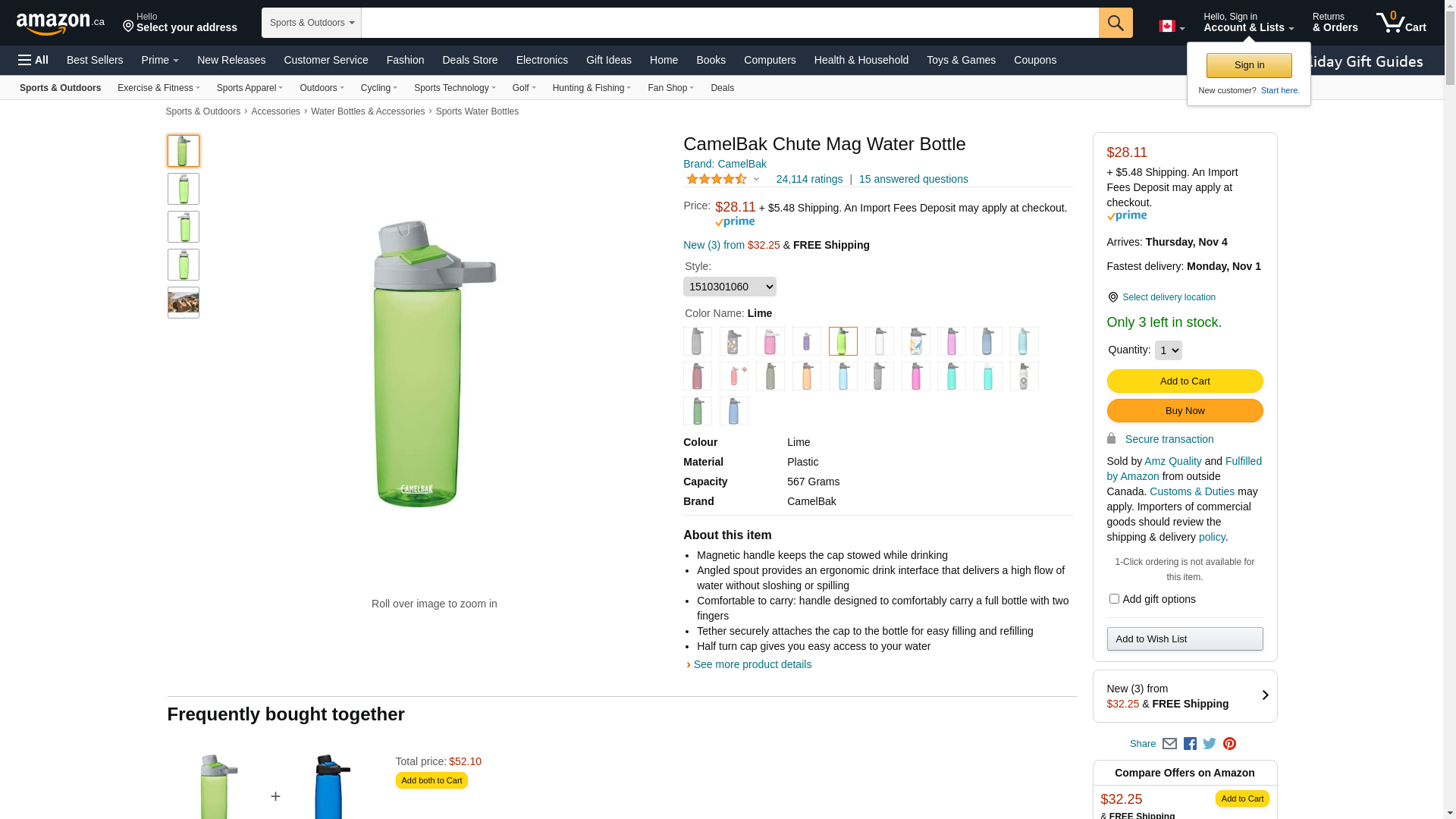 CamelBak Chute Mag BPA Free Water Bottle 20 oz, Lime