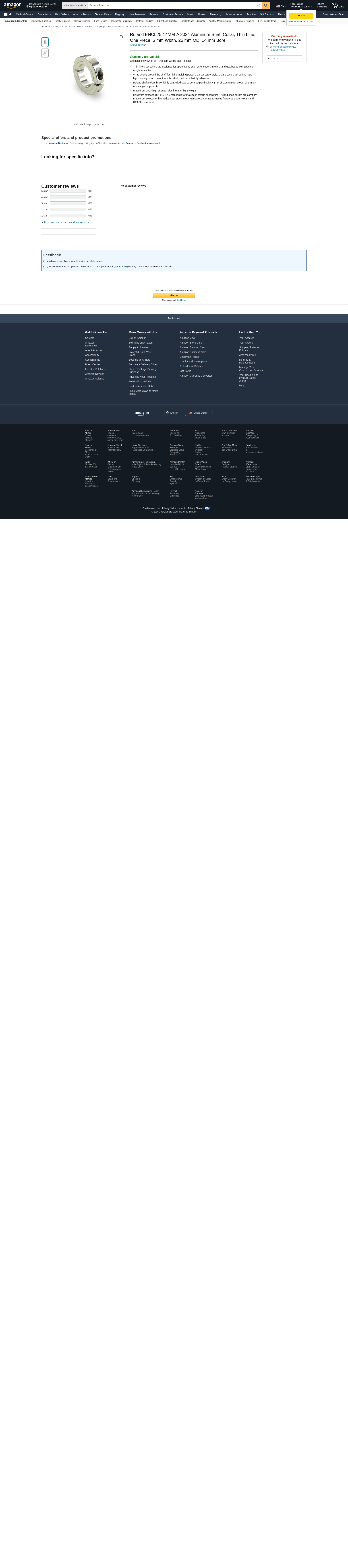 Ruland ENCL25-14MM-A 2024 Aluminum Shaft Collar, Thin Line, One Piece, 6 mm Width, 25 mm OD, 14 mm Bore