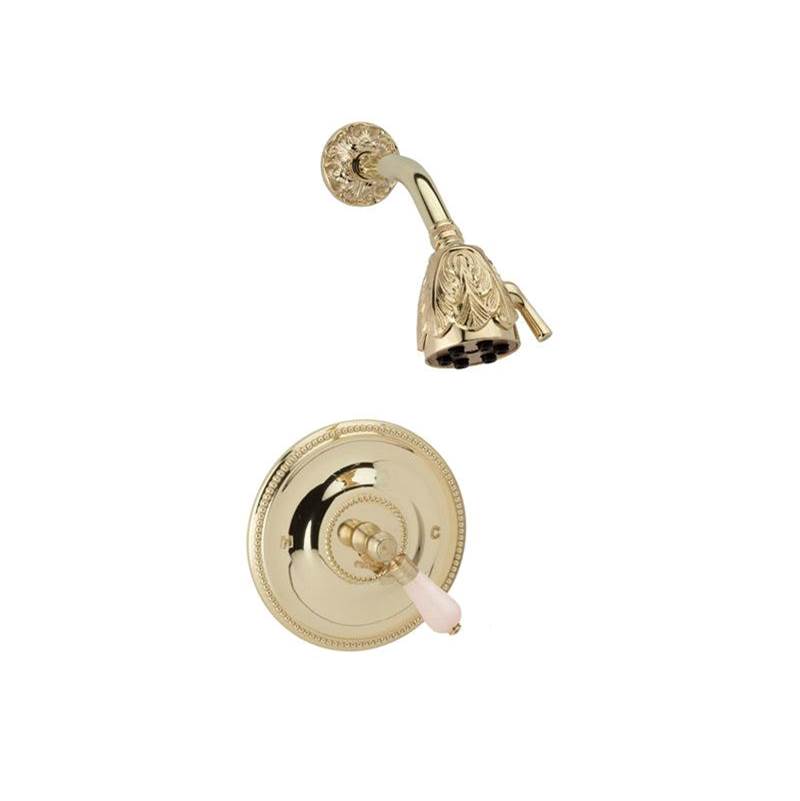 PHYLRICH PB3243/26D VERSAILLES WALL MOUNT PRESSURE BALANCE SHOWER SET WITH PINK ONYX LEVER HANDLE, SATIN CHROME