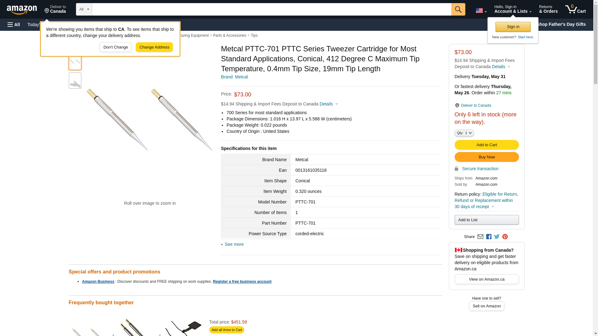 Metcal PTTC-701-PK PTTC Series Tweezer Cartridge for Most Standard Applications, Conical, 412 Degree C Maximum Tip Temperature, 0.4mm Tip Size, 19mm Tip Length (Pack of 2)