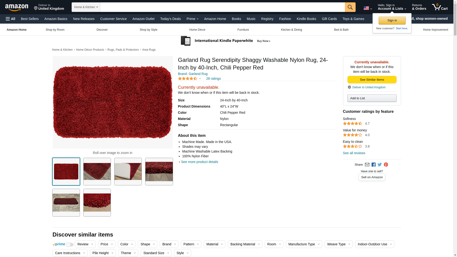 Garland Rug Serendipity Shaggy Washable Nylon Rug, 24-Inch by 40-Inch, Chili Pepper Red