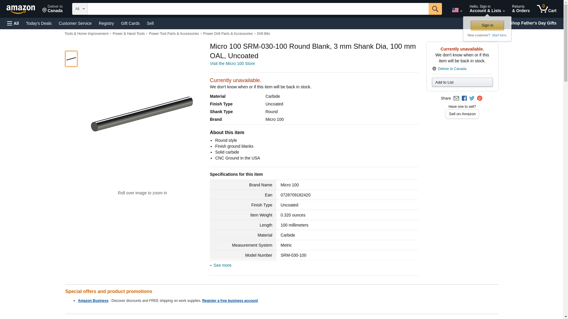 Micro 100 Drill Blank,Metric,Carbide SRM-030-100 ZO-G9730016 - SIM Supply