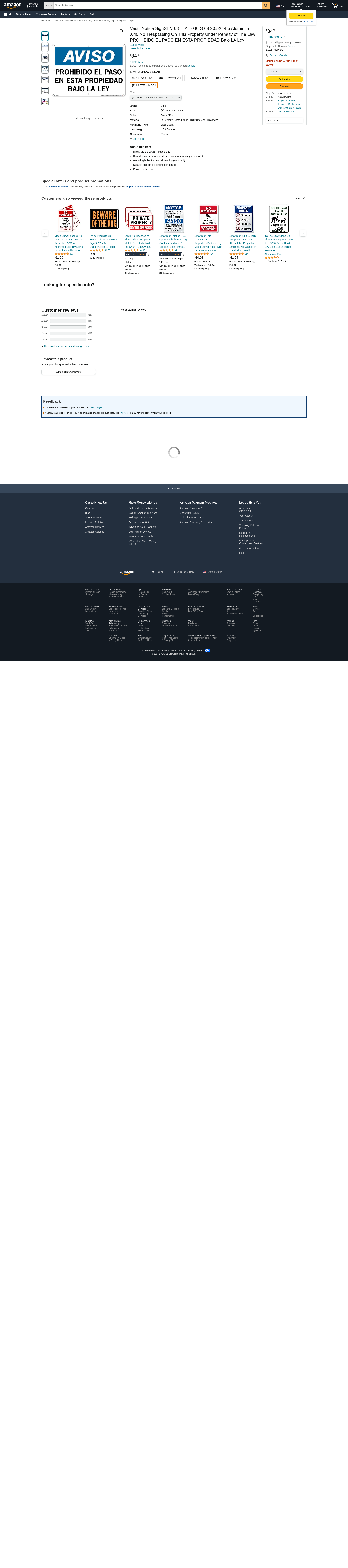 Vestil Notice SignSI-N-68-E-AL-040-S 68 20.5X14.5 Aluminum .040 No Trespassing On This Property Under Penalty of The Law PROHIBIDO EL PASO EN ESTA PROPIEDAD Bajo LA Ley