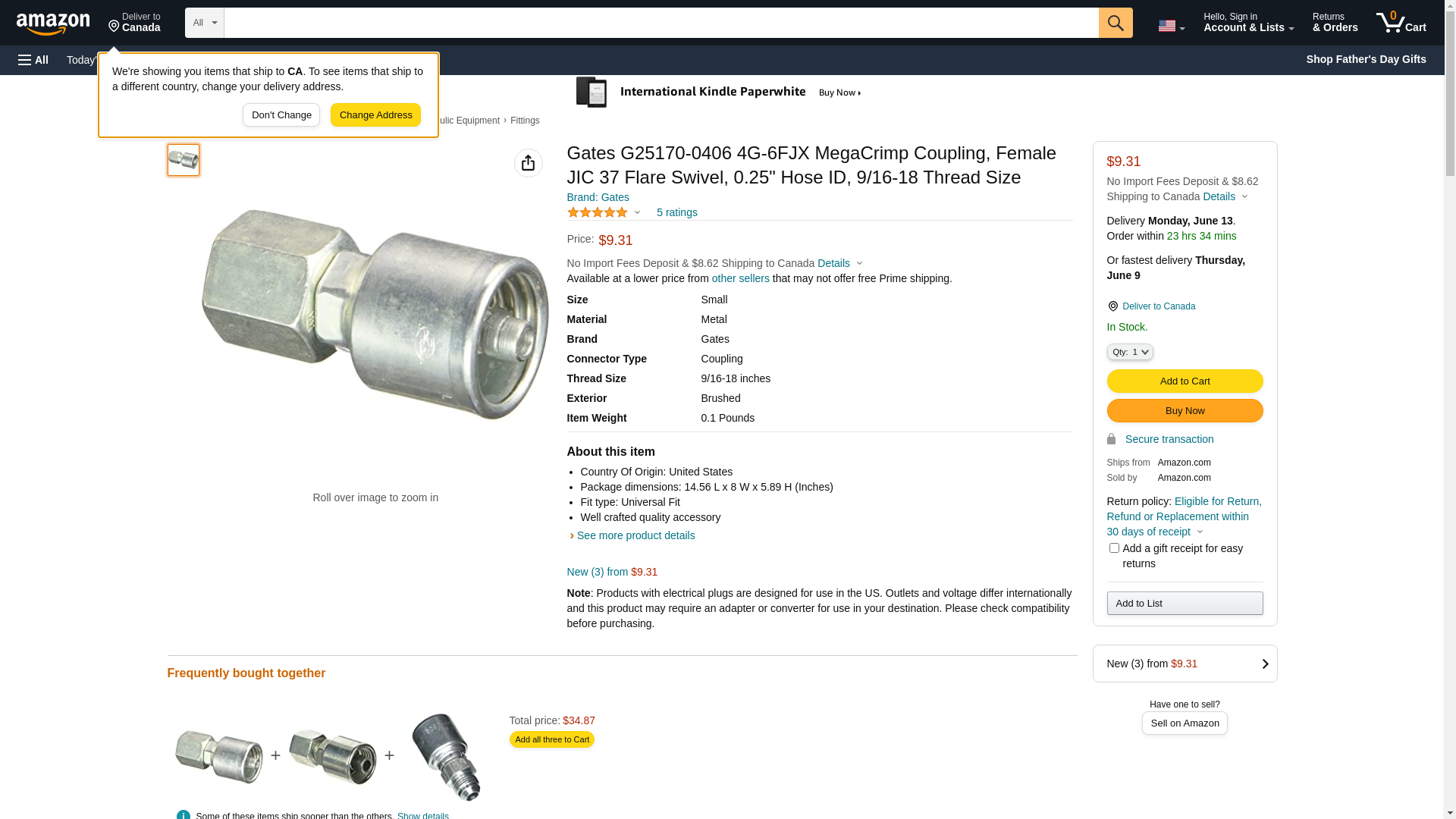 Gates G25170-0406 4G-6FJX MegaCrimp Coupling, Female JIC 37 Flare Swivel, 0.25" Hose ID, 9/16-18 Thread Size