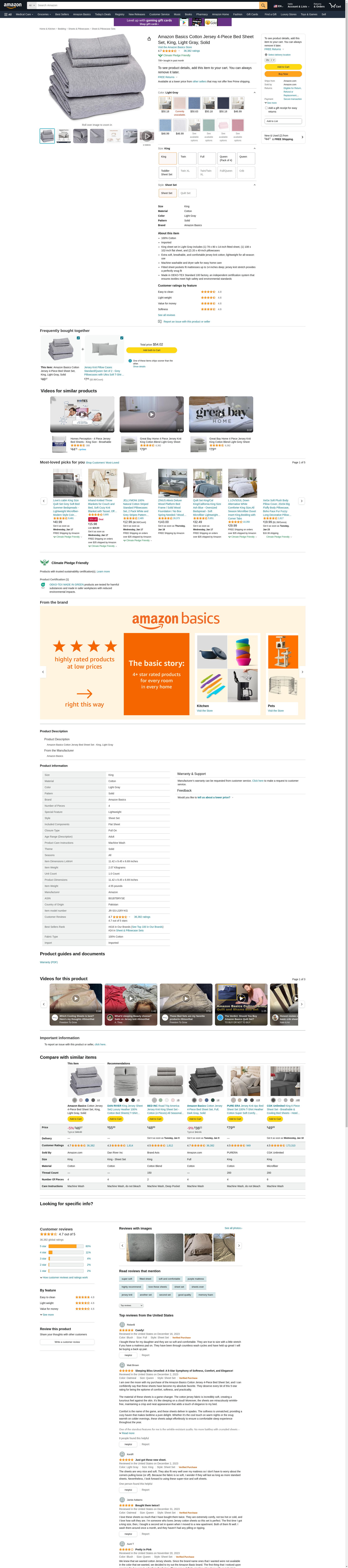 AmazonBasics Heather Cotton Jersey Bed Sheet Set - King, Light Grey: Maxedbuy.com
