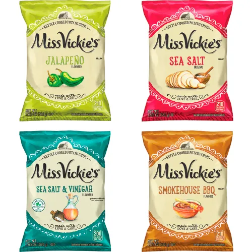 - This package offers a delicious variety of 30 single-serve bags of MISS VICKIE'S Kettle Cooked Potato Chips: