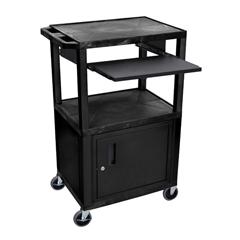 H. Wilson 42"H AV Cart - 3 Shelves, Cab, Pullout - Black - Luxor WTPS42C2E-B EA - Betty Mills