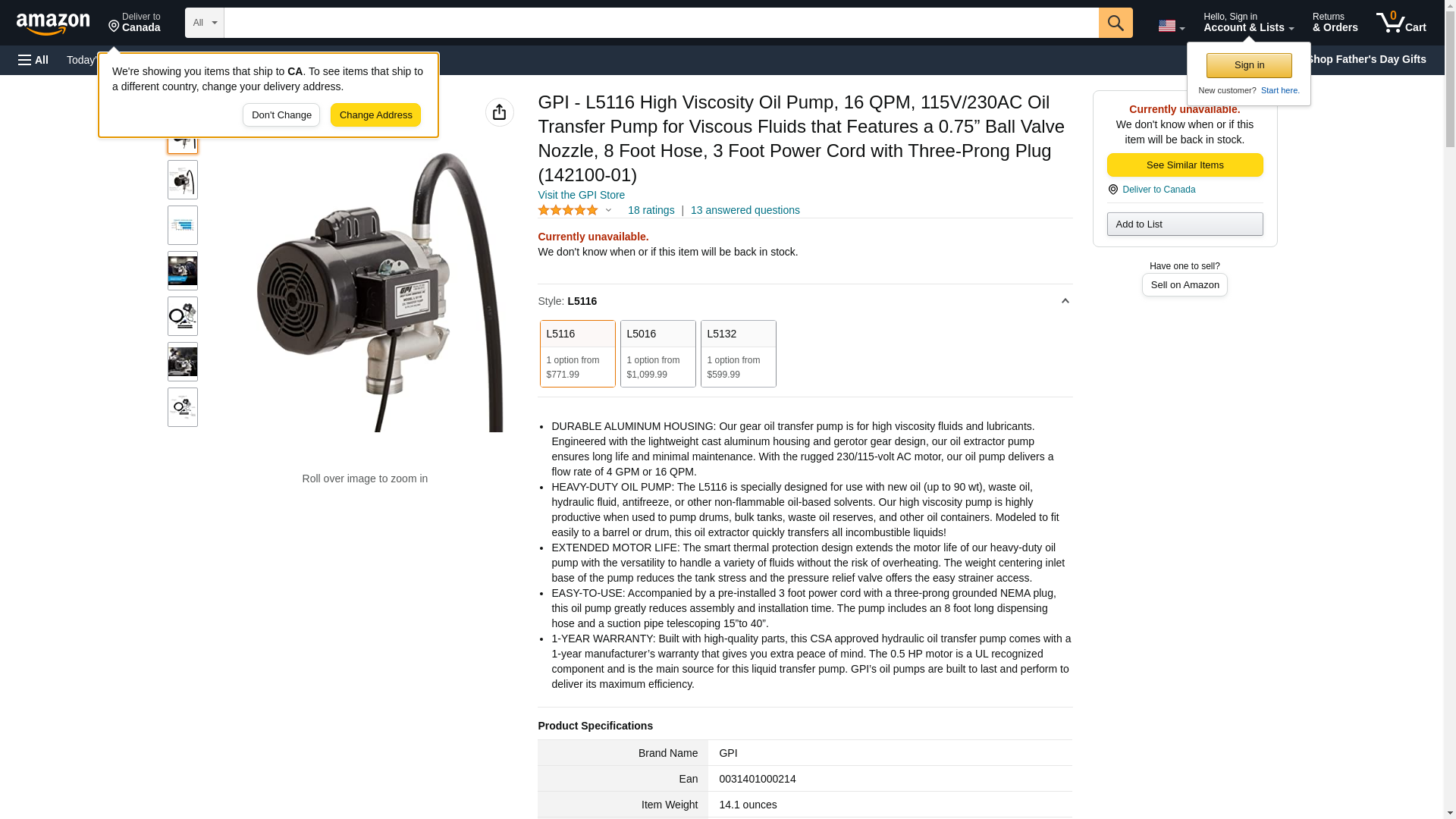 GPI - L5116 High Viscosity Oil Pump, 16 QPM, 115V/230AC Oil Transfer Pump for Viscous Fluids that Features a 0.75” Ball Valve Nozzle, 8 Foot Hose, 3 Foot Power Cord with Three-Prong Plug (142100-01)
