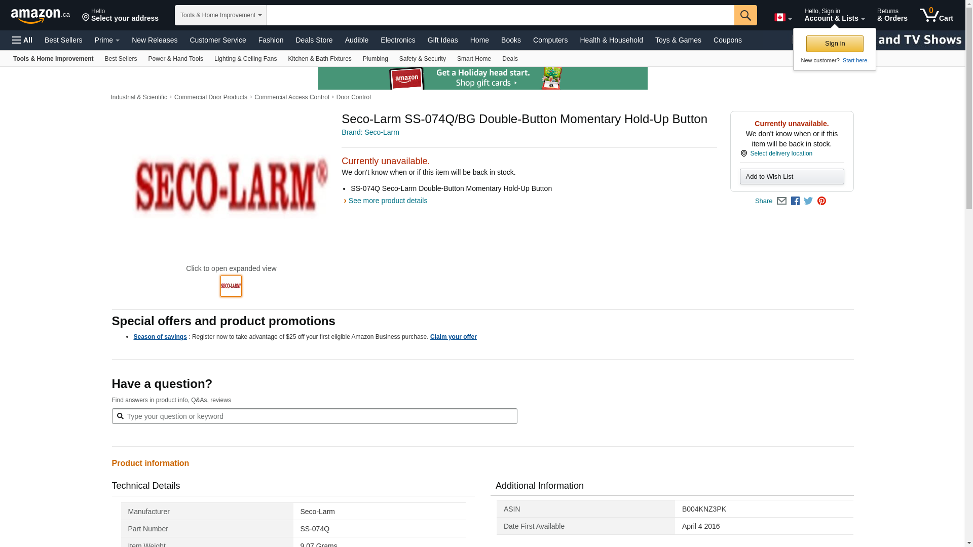 - SS-074Q Seco-Larm Double-Button Momentary Hold-Up Button