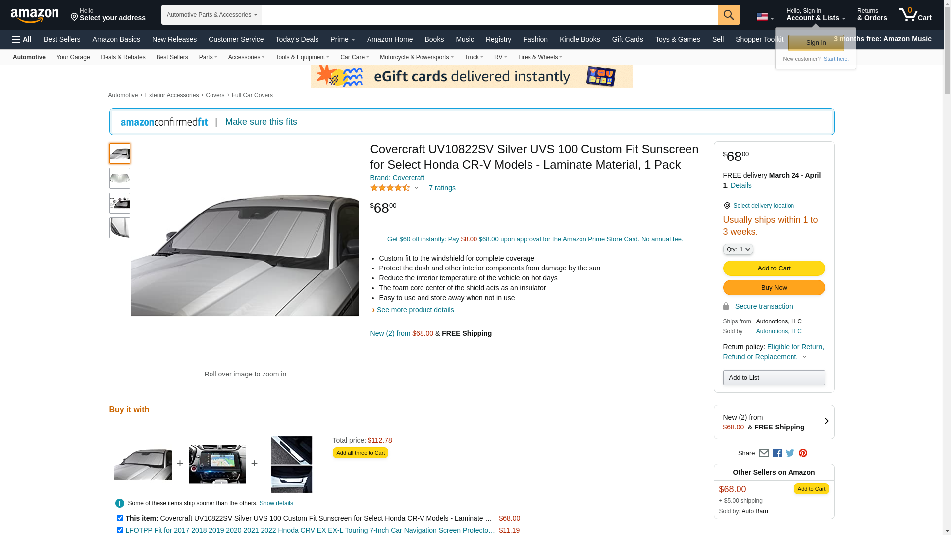 Covercraft UV10822SV Silver UVS 100 Custom Fit Sunscreen for Select Honda CR-V Models - Laminate Material, 1 Pack