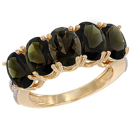 10K Yellow Gold Natural Smoky Topaz 1 ct. Oval 7x5mm 5-Stone Mother's Ring with Diamond Accents, sizes 5 to 10 with half sizes