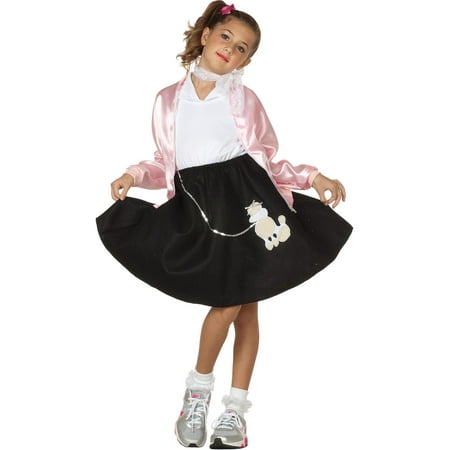 Bring back the 50's look with our Black Poodle Skirt Costume for Kids. It includes a black poodle skirt and neck scarf. Add matching accessories for a fun look that will dazzle at any soda shop.