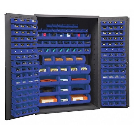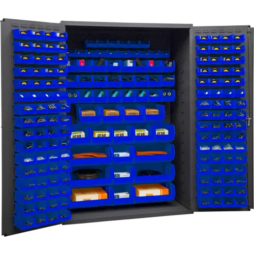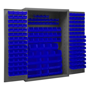 Toolschest.com|Toolschest.com. Durham 3502-186-5295 14 Gauge Flush Door Style Lockable Cabinet with 186 Blue Hook on Bins, Gray - 48 in.