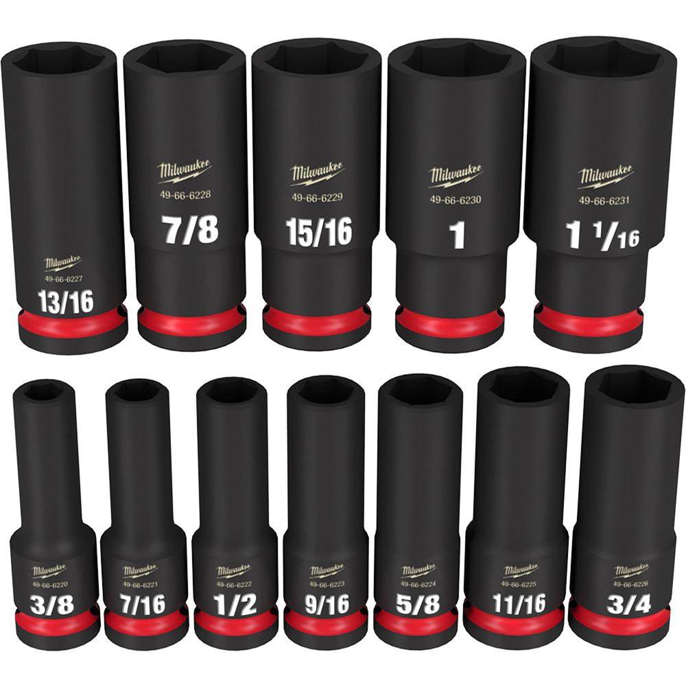 - Milwaukee 49-66-7011 12 Piece 1/2" Drive SAE Deep Well Impact Socket Set