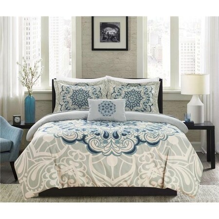 A modern duvet cover set with everything you need to give your bedroom a bold fresh look The duvet cover features a contemporary Bohemian inspired largescale medallion paisley panel print on the face with a minimalist solid color design on the reverse Design coordinated supersoft microfiber sheets pillowcases reversible pillow shams and an embroidered decorative pillow are included to complete the look Features. Nanami 8 Piece Reversible Duvet Cover Set Large Scale Boho Inspired Medallion Paisley Print Design Bed in a Bag Sheet Set Pillowcases Decorative Pillow Shams Included. Hidden zipper closure design for easy care. Luxuriously soft feel for a great night sleep with less tossing and turning. Fits everything from light blankets to heavy duvets. Built to last with premium fabrics and expert stitching. 8 PieceSet Includes. 1pc Reversible Duvet Cover 104 x 90 2pc Reversible Pillow Shams 20 x 36 2 1pc Embroidered Decorative Pillow 12 x 18 1pc Flat Sheet 108 x 102 4 1pc Fitted Sheet 78 x 80 12 Deep Pocke 2pc Pillowcases 20 x 40Fabric and Design. Soft brushed microfiber cottonfeel material Fashion forward Boho inspired large scale medallion paisley print on the face with a solid color backingCare Instructions. Dry clean preferred Machine washable use front loader machine or top loader without agitato to avoid tearing use cold water on gentle cycle tumble dry low. Add 2 tennis balls to the dryer to speed up drying and add fluffinessSpecifications. Color Scheme Blue Grey Beige. Materials Luxuriously Brushed Microfiber Fabric. Size King. Weight 21 lbs