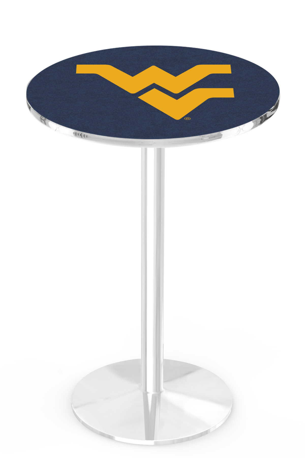 Holland Bar Stool L214C3636WestVA 36 in. West Virginia Mountaineers Pub Table with 36 in. Top, Chrome