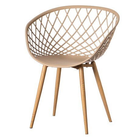 Fabulaxe Modern Nude Sidera Plastic Chair Crosshatch Lattice Back with Metal Wood Look Legs, Beige
