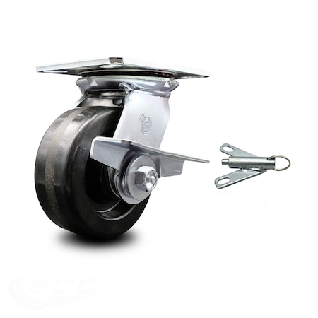 Heavy Duty Large Top Plate Phenolic Swivel Caster w/5" x 2" Black Wheel & Side Lck Brake and Bolt on Swivel Lock - 1000 lbs Capacity/Caster - Service Caster Brand