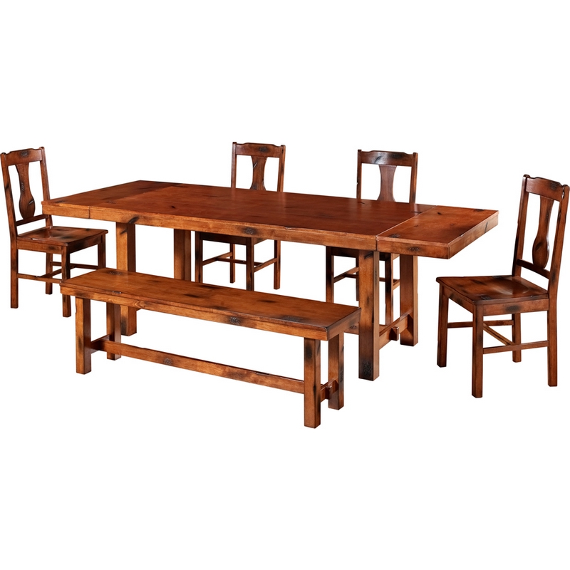 Walker Edison C60H2DO 6 Piece Huntsman Wood Dining Set in Dark Oak
