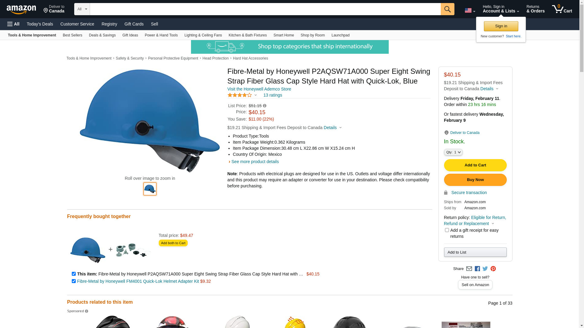 | Feature | Price For: Each Graphics: None Hard Hat Sub-Category: Hard Hats Without Graphics Venting: No Item: Hard Hat Accessory Slots: Yes Hard Hat Suspension: 8 pt. Ratchet Hard Hat ANSI Type: 1 Shell Material: Thermoplastic Series: Roughneck P2A Color: Blue Hard Hat ANSI Class: C, G Hard Hat Style: Front Brim Standards: ANSI Z89.1-2009, CSA Z94.1-2005 |