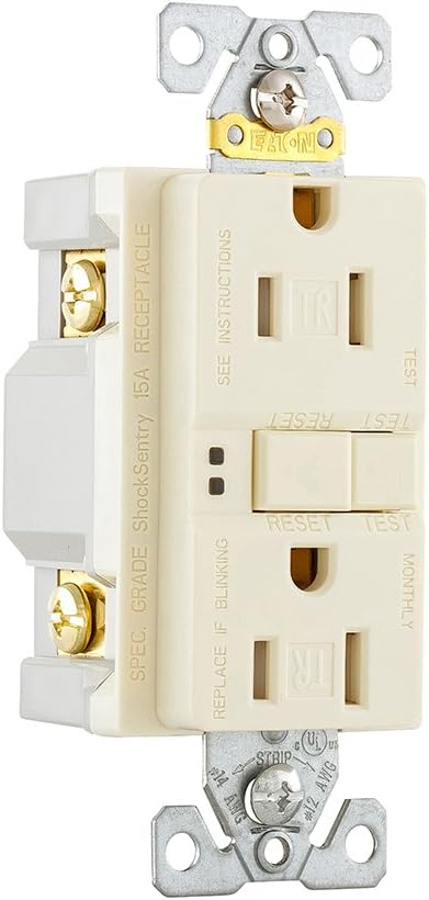 EATON TRSGF15LA Wiring Self-Test Tamper Resistant Gfci Receptacle, 4.2 in L X 1.68 in W X 1.27 in D, Automatic