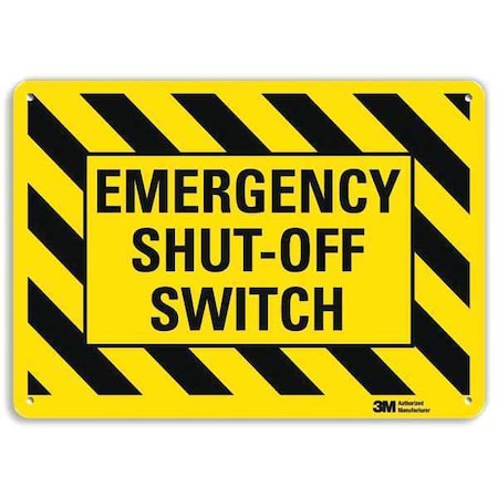 Safety Sign, Vertical Rectangle, Number of Printed Sides 1, English, Sign Legend Emergency Shut Off Switch, Sign Legend Background Color Yellow, Sign Legend Style Text