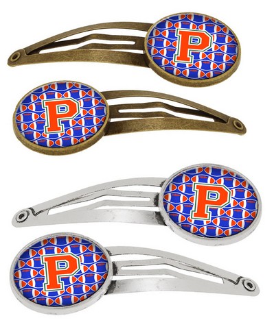 Carolines Treasures CJ1083-PHCS4 Letter P Football Green, Blue & Orange Barrettes Hair Clips - Set of 4