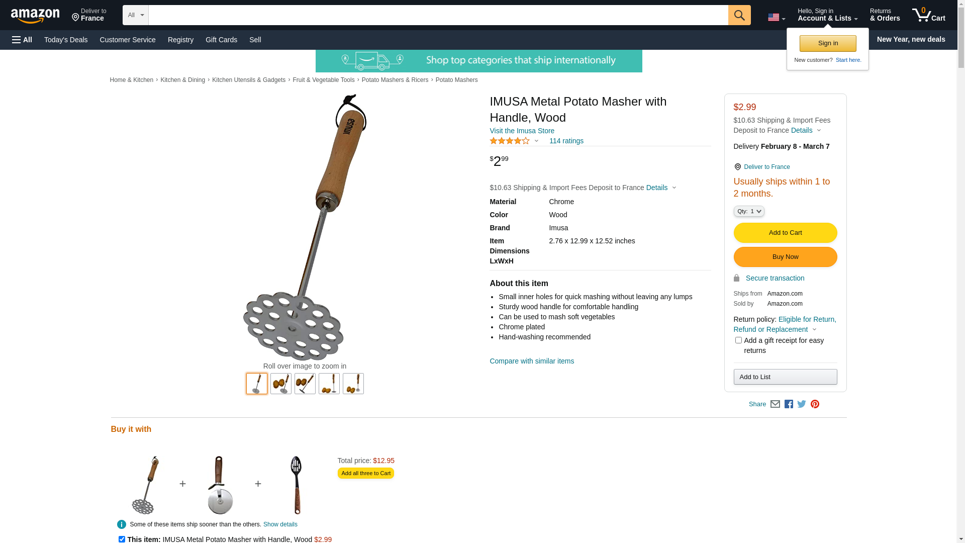 IMUSA IMU-71125 Potato Masher, Wood Handle - Quantity 4
