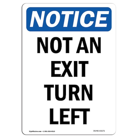 OSHA Notice Sign, Not An Exit Turn Left, 24in X 18in Rigid Plastic