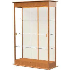 Waddell Varsity Sliding Doors Lighted Display Case, 48W by 77H by 18"D, Plaque Back with Carmel Oak Finish