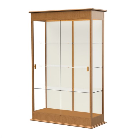 Designed with the timeless elegance of classic fine furniture, the premium Varsity Series cases are so well crafted they'll look right at home in any decor. Whether you choose a hinged or sliding door, a Varsity case is the clear choice when only the best will do. Cove molding beautifully accents the exterior of these solid oak and oak veneer cases. The built-in lighted cornice highlights your collection on three adjustable shelves, while quality locks and tempered glass provide added security. To showcase your finest collection, choose the classic styling of the Varsity Series.