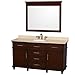 Wyndham Collection Berkeley 60" Single Bathroom Vanity in Dark Chestnut, Ivory Marble Countertop & 44" Mirror