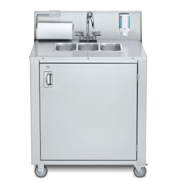 Crown Verity CV-PHS-3C Portable Hand Sink Cart, cold water only, 3 compartment, lockable access door, (2) 5 gallon- CV-PHS-3C- Crown Verity Crown Verity CV-PHS-3C Portable Hand Sink CartCrown Verity CV-PHS-3C Portable Hand Sink Cart, cold water only, 3 compartment, lockable access door, (2) 5 gallon- CV-PHS-3C- Crown VerityCold Water Only3 CompartmentLockable Access Door(2) 5 Gallon Removable Fresh Water Tanks & (2) 7-1/2 Gallon Removable Waste Water TanksBacksplash With Soap & Paper Towel DispensersStainless Steel Construction120V/60/1-Ph12' CordWater PumpCabinet Construction: Stainless SteelSink Bowl Qty.: 3Color: None Portable Hand Sinks VER-CV-PHS-3C, CVPHS3C