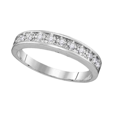 <p><span style="font-size:16px;"><b><u>Description</u></b><br /></span></p> <p><span style="font-size: 14px;">10kt White Gold Womens Round Diamond Band Ring 1/10 Cttw</span></p> <br /> <p><span style="font-size:16px"><u><b>Gemstone Details</b></u></span></p> <p><span style="font-size:14px">1/10 Carats total weight<br /><br />All diamonds are natural and conflict-free in origin<br /><br /><b>Round Diamond</b><br /></span></p> <li>1/10 ct.t.w.</li> <li>I2-I3 clarity</li> <li>J-K color</li> <li>Prong setting<br /><p><span style="font-size:16px"><u><b>Specifications</b></u><br /></span></p><p><span style="font-size:14px">10kt White Gold<br />2.45 grams (approximately)<br />Ring size selectable</span></p><p><span style="font-size:11px">Combined diamond weight of 1/10 carats total weight represents a range of 0.09 - 0.11 cts. t.w.</span></p></li>
