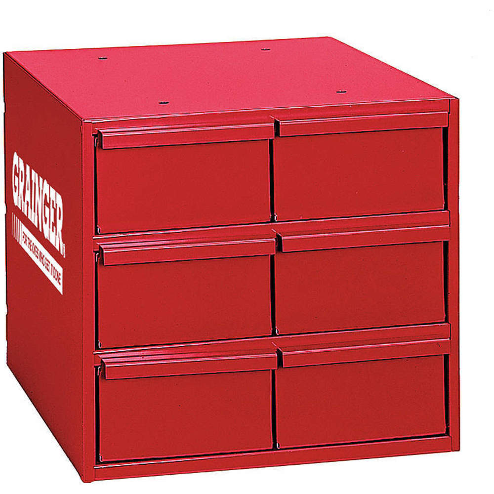 'Drawer Bin Cabinet, ESD Conductive No, No. of Drawers 6, Drawer Depth 11-1/4 In., Drawer Width 5-3/8 In., Drawer Height 2-3/4 In., Depth of Cabinet 13 In., Width of Cabinet 12 In., Height of Cabinet 12 In., Material - Cabinets Steel, Drawer Color Red, Cabinet Color Red, Drawer Material Steel, Number of Removable Dividers 0'