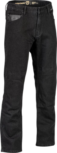 Apparel Material: Textile<br>Gender: Mens/Unisex<br>Color: Black<br>Size: 34<br>Market Color: Black<br>Primary Color: Black<br><br>The comfort of jeans can�t be denied and when they�re made for riding, even better. Stronghold Jeans from HIGHWAY 21� are a single layer denim blend featuring Dyneema fiber and Sas-Tec flex-armor for serious protection. Like an old friend, Stronghold jeans are steadfast and dependable. Run for the Stronghold..<br> MATERIAL:.<br> 12oz Single-Layer Denim, multi-fiber component fabric for a soft hand..<br> Dyneema performance fiber.<br> Highly abrasion-Resistant blend of 68% cotton/13% Dyneema/ 10% Nylon/ 8% Polyester/ 1% spandex.<br> SAS-Tec Flex-armor at knees conforms to EN 1621-1 standard.<br> Detachable hip armor pockets (optional armor available).<br> Leather watch pocket.<br> Belt loop key hanger.<br> YKK fly zipper.