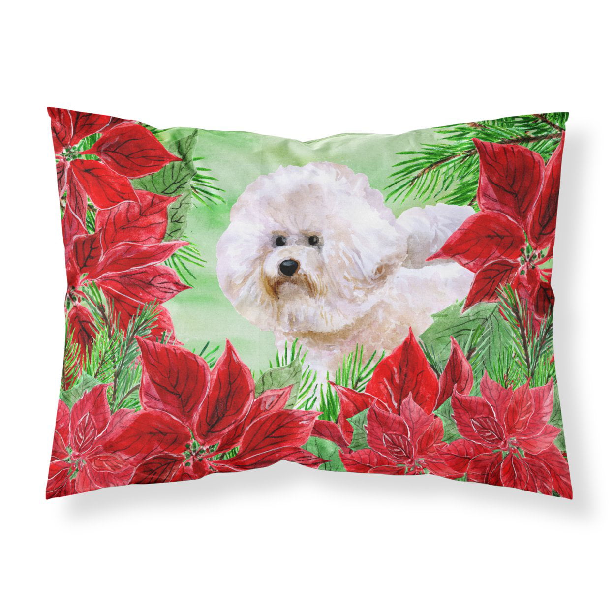 Carolines Treasures CK1353PILLOWCASE Bichon Frise No.2 Poinsettas Fabric Standard Pillowcase