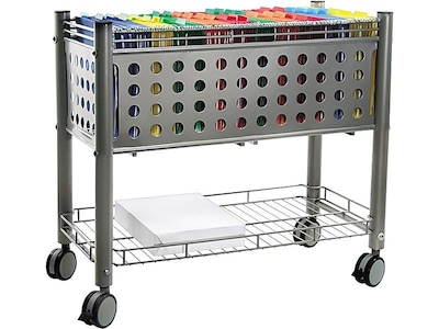 For letter size hanging file folders. Sliding file rails adjust to hold legal size file folders. Bottom storage shelf removes easily to add VertiflexTM SmartworxTM Companion File (sold separately). Durable steel and wire construction. Four twin-wheel casters, two locking.