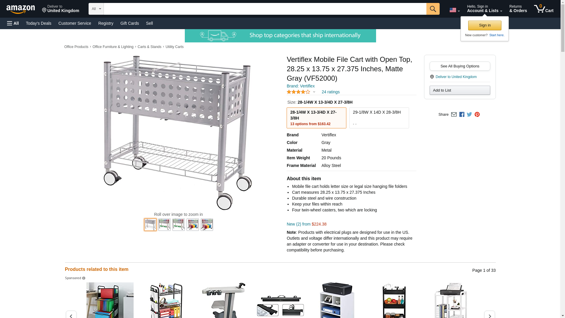 Vertiflex Mobile File Cart with Open Top, 28.25 x 13.75 x 27.375 Inches, Matte Gray (VF52000)