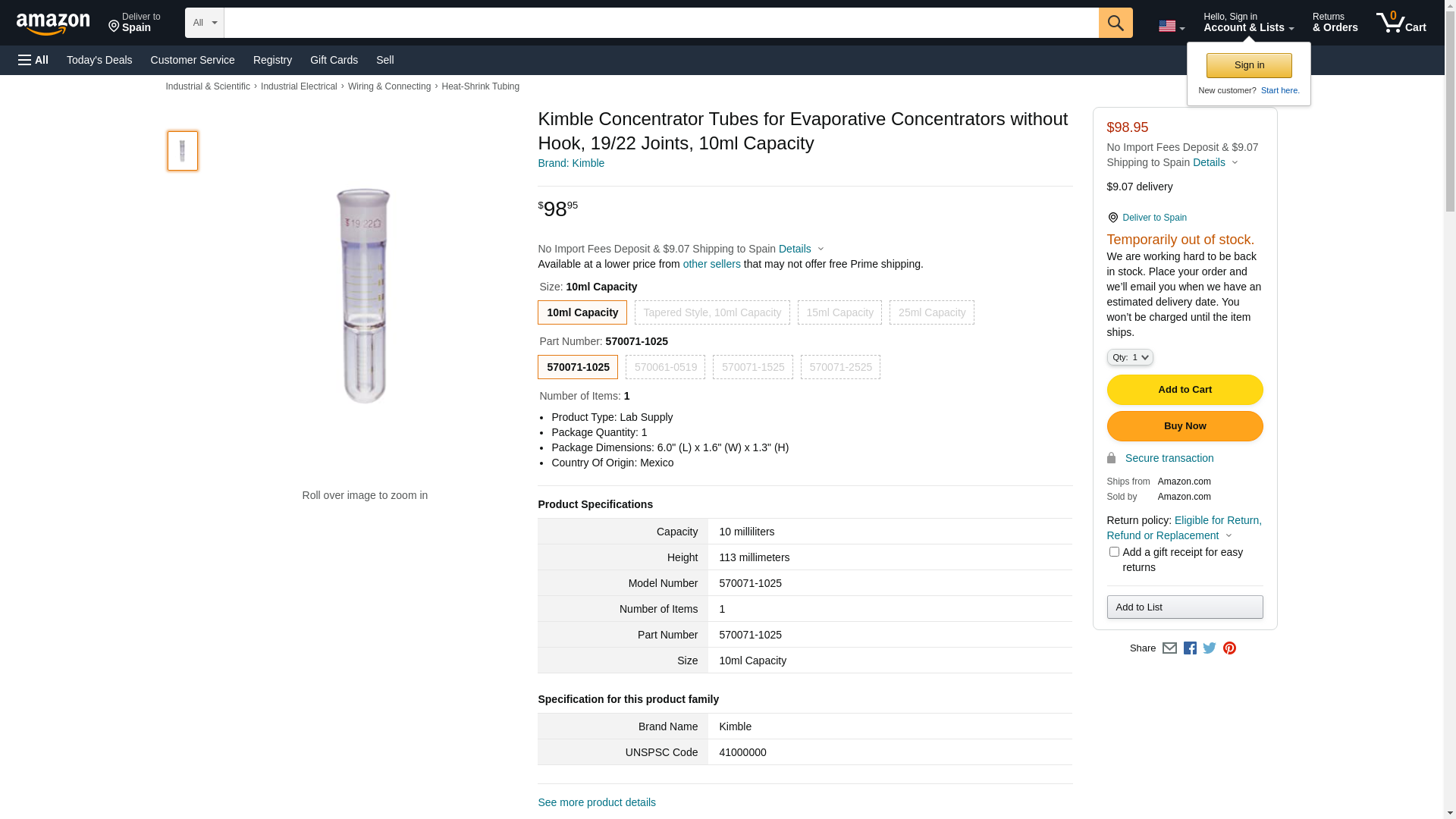 | Feature | KIMBLE - Concentratr Tube 10ML 1922 , EA1 |