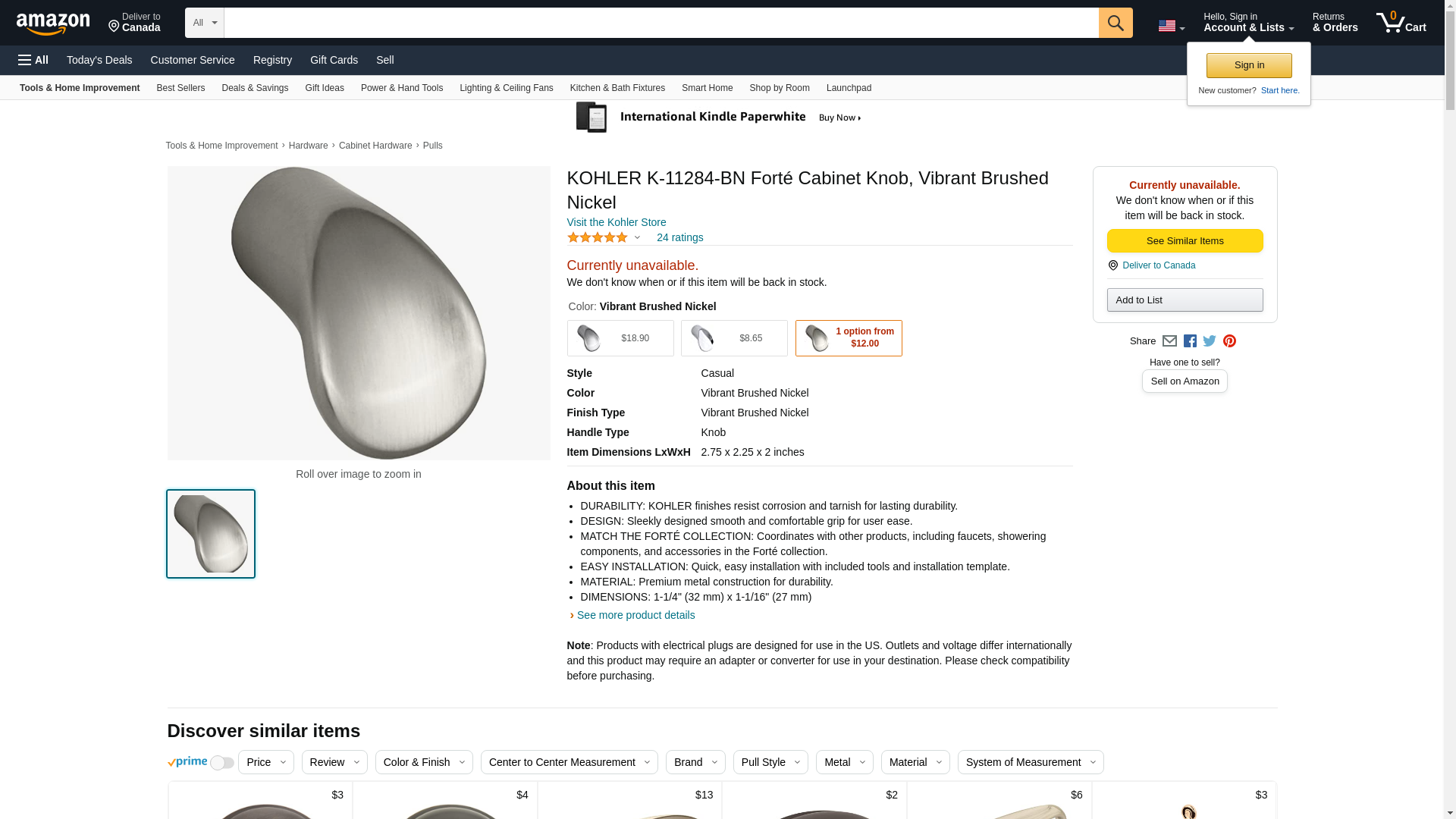 K-11284-BN Finish: Vibrant Brushed Nickel Pictured in polished chrome Features: -Cabinet knob.-Easy upgrade for any bath or kitchen cabinetry.-Classic styling. Construction: -Premium metal construction for durability and reliability. Color/Finish: -Vibrant Brushed Nickel finish.-Polished Chrome finish. Dimensions: -Overall dimensions: 1.063'' H x 1.25'' D. Collection: -Forte collection. Warranty: -Kohler provides a lifetime limited warranty.