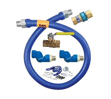 Dormont 1675KIT2S48 Blue Gas Connector Hose Kit with Snapfast Disconnect, Restrain Device, Valve and 2 Swivels, 3/4" Diameter, 48" Length